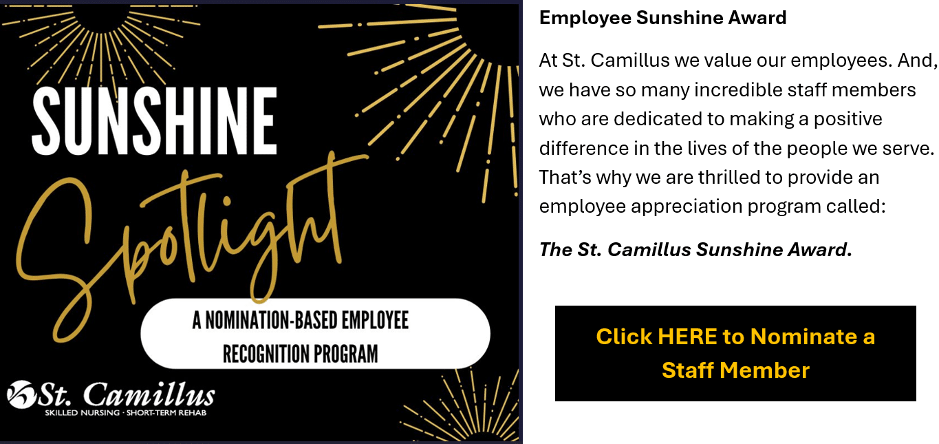 August 22, 2025 - We are excited to announce the launch of our new Employee Sunshine Award At St. Camillus we value our employees. And, we have so many incredible staff members who are dedicated to making a positive difference in the lives of the people we serve....